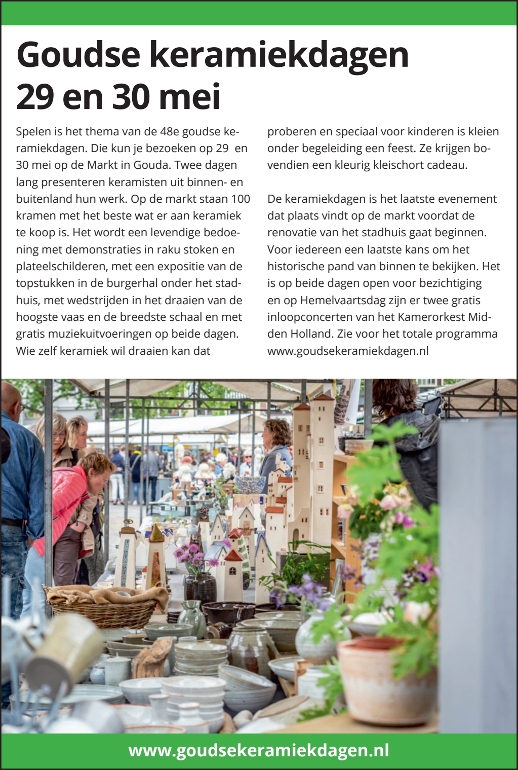 Officiële advertentie voor de Goudse Keramiekdagen in het vakblad “Klei”.