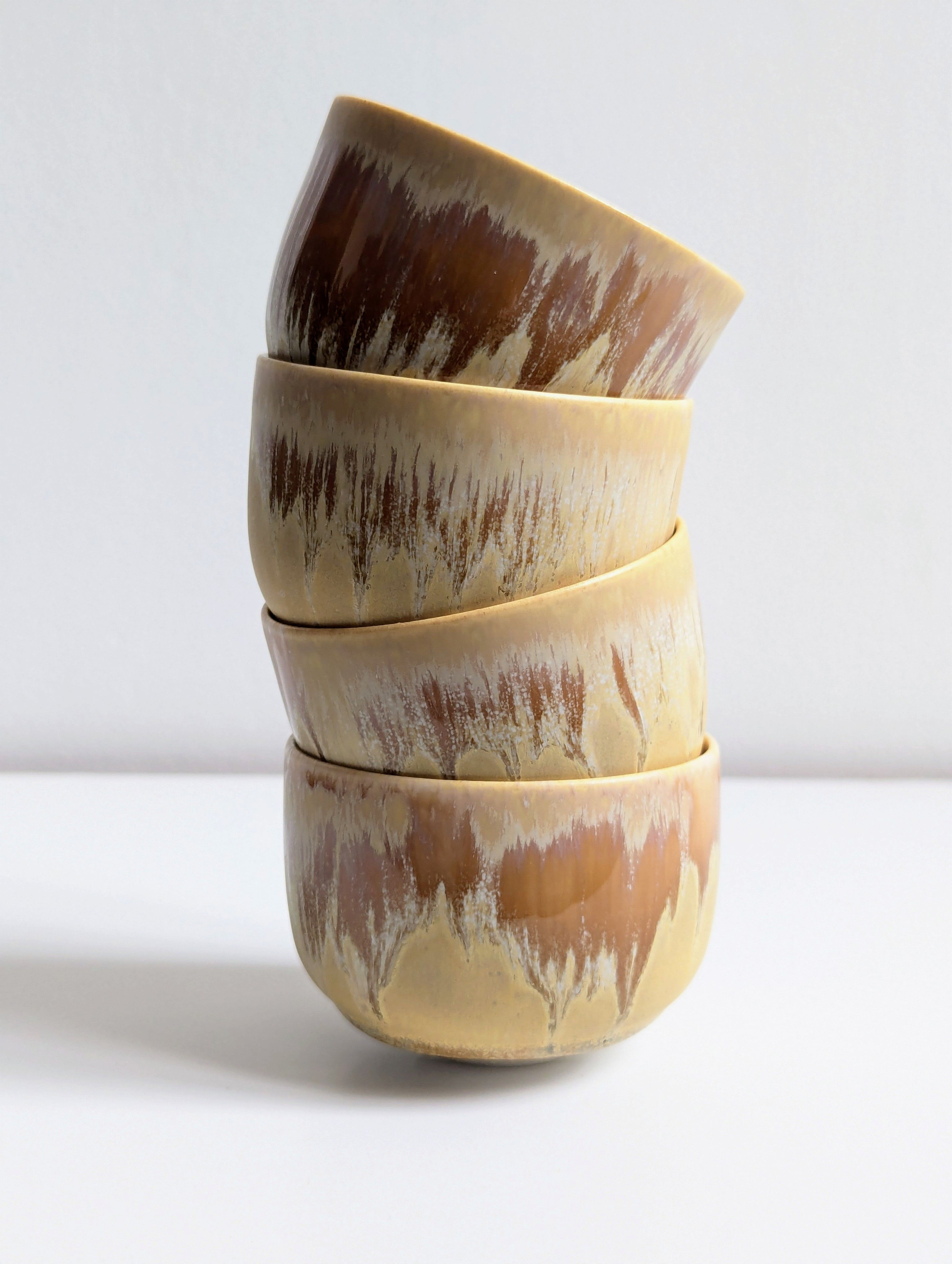 During my career, I've tried my hand at differents artistic disciplines. And it was during a throwing course that I discovered my vocation. Since 2021, I have devoted myself entirely to clay. My interests were focused on the superimposition of glazes. Then crystallization came to me. I mainly throw stoneware with a porcelain stain. "For me, nature is an inexhaustible source of inspiration, and crystalline glaze is what imitates it best.