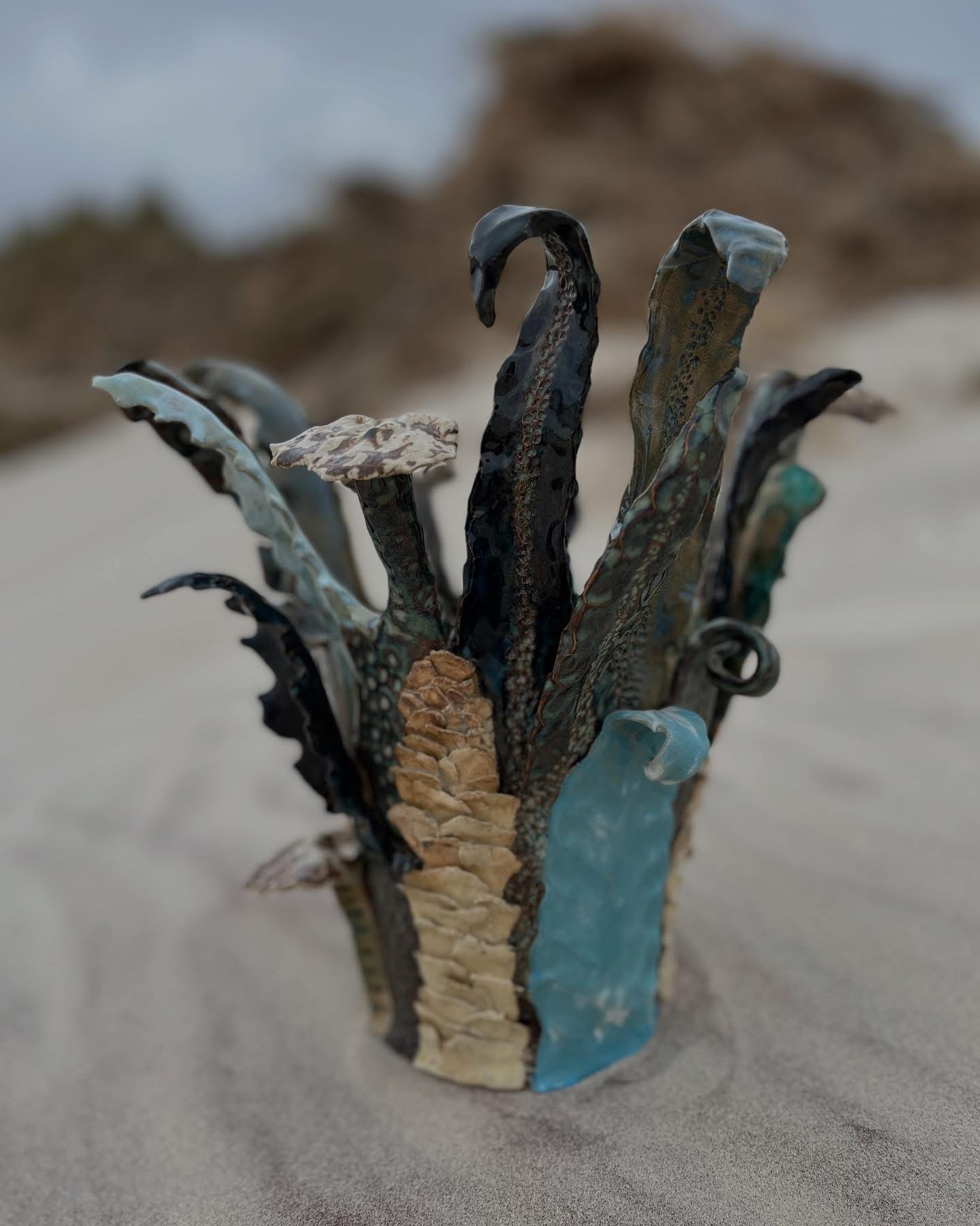 Mijn keramische werk bestaat uit objecten die balanceren tussen gebruiksvoorwerp en sculptuur. Ik maak objecten die doen denken aan vaten, lichamen of organismen. Structuren die lijken te groeien, kijken of ademen. Door het gebruik van organische vormen, stekels en ogen ontstaan sculpturen die zowel kwetsbaar als weerbaar zijn.
