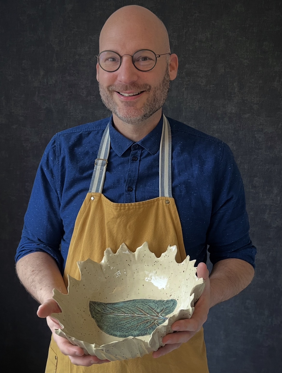 In mijn atelier werk ik graag met steengoed klei en mijn werk is altijd geïnspireerd door de natuur. Dit zie je in de vormgeving van mijn schalen, vazen, wandobjecten en servies goed terug. Ook werk ik graag met afdrukken van bladeren en bloemen en vind ik het geweldig om te spelen met contrasten en structuren. Alles is uniek en zelfs bij elk bordje zie je het handgemaakte effect terug. Alles wordt gestookt op minimaal 1220 graden.
