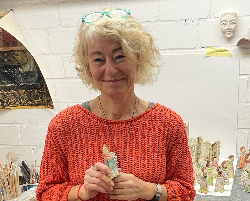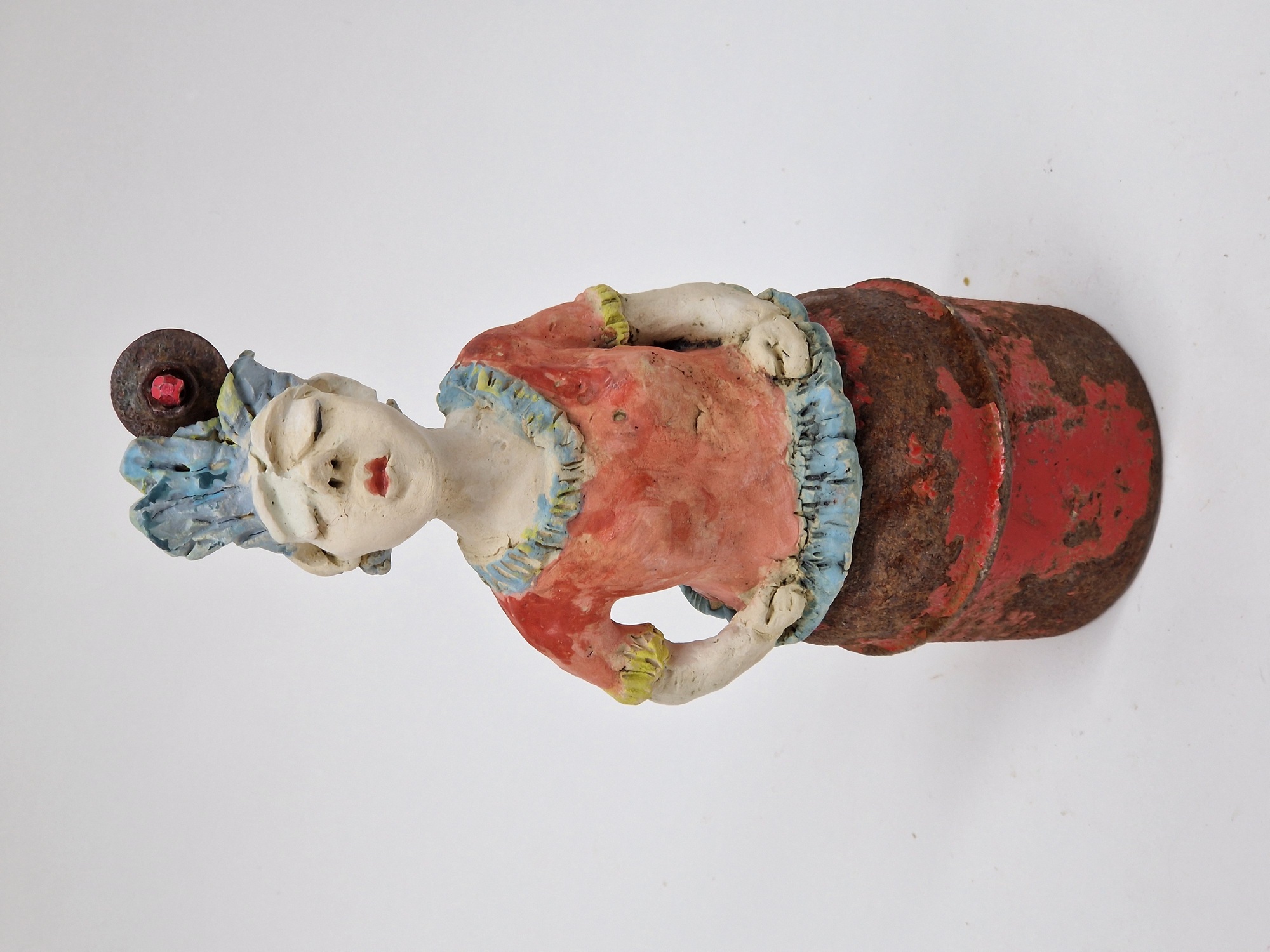 Ich biete figurative Unikate an. Die Serie heißt Frl. Schmitz und ihre Freunde. Dazu gesellen sich auch Tierplastiken. Diese Arbeiten sind in Wulsttechnik aufgebaut, engobiert, manchmal auch mit Fundstücken montiert. Eine zweite Arbeitsserie sind Paperclayarbeiten, Haus und Siluetten angelehnte Formen. Mit einer ausdruckstarken Oberfläche mit vielen Spuren der Bearbeitung und Rissen.